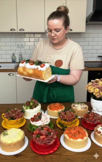 4. Бисквитная корзинка с салатной начинкой